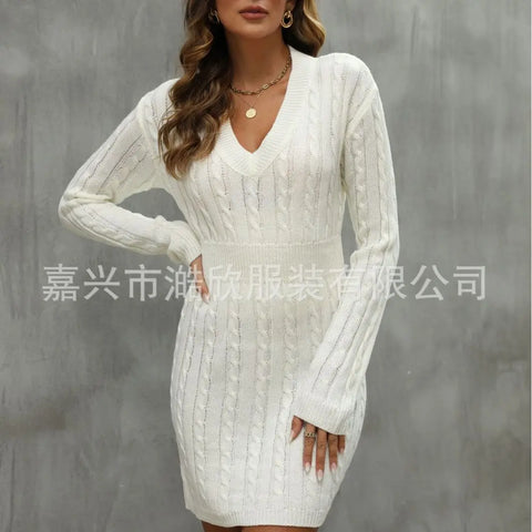 2023 Autumn And Winter Foreign Trade Cross-border Women's Sweater Waist Twist Hip Dress European And American Fashion Knitted Dress