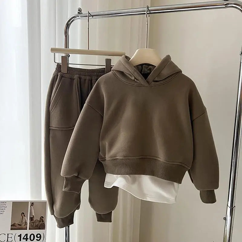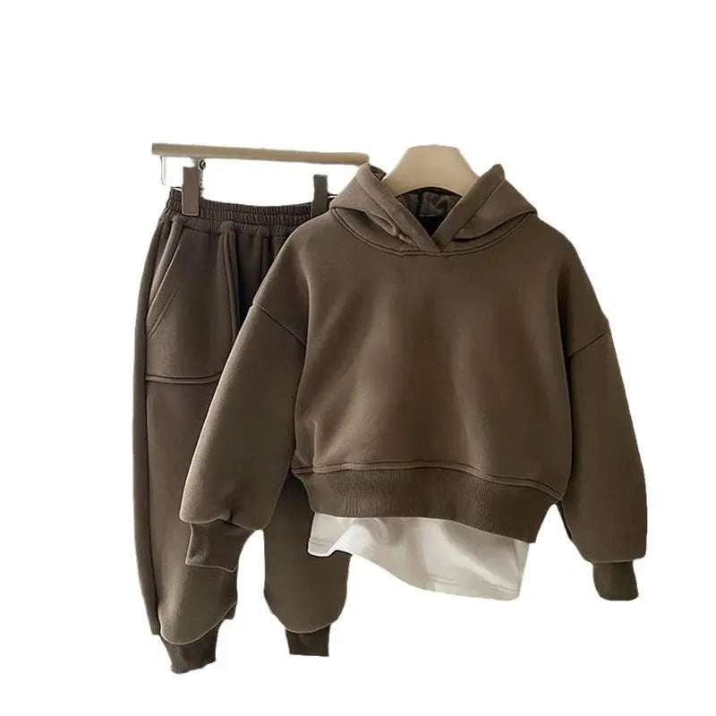 • Name : Boys And Girls Autumn And Winter Fleece-lined Padded Vests Suit 2024 New Children's Sports Western Style Leisure Two-piece Suit
