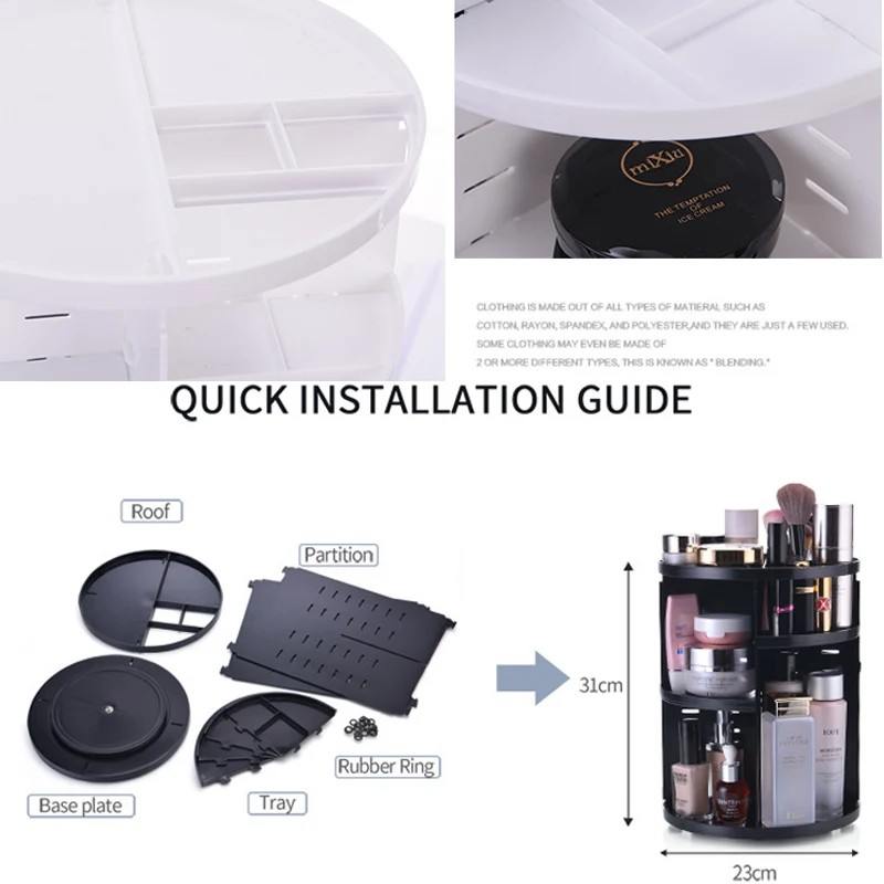 The spinning function works perfectly, and it was very easy to set up. The material feels durable, and it holds a lot without feeling unstable. Definitely a great buy!