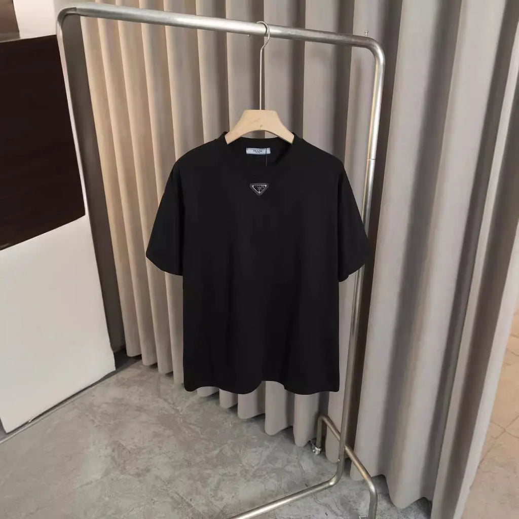 This Spring fashion trend features the new P small label inverted triangle T-shirt, designed for both men and women. The loose fit allows for comfortable movement, making it ideal for casual outings or lounging at home. Because it comes in various sizes, everyone can find their perfect fit and enjoy the stylish look.