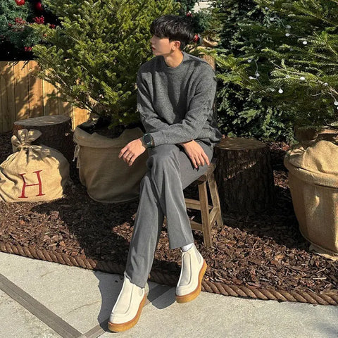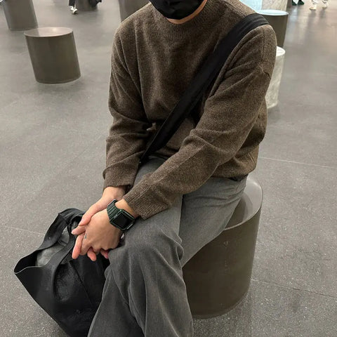 MYQ Lazy Style Round Neck Sweater Men's Autumn Korean Style Loose Bottoming Sweater Autumn And Winter Warm Coat