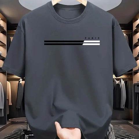 Men's Casual Summer T-shirt, Paris Letter Print, Polyester K