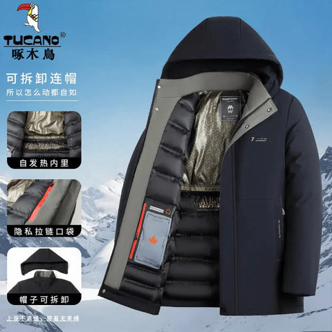 Woodpecker 2024 Fall/Winter New Hooded Warm Windproof Cold-proof Fleece-lined Thickened Dad Men's Cotton Jacket