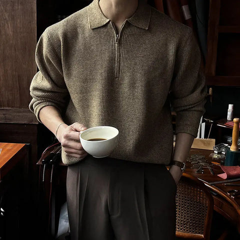 Half Zipper Lel Polo Shirt Sweater Men's Spring And Autumn Korean High-end Cleanfit Casual Knitted Sweater