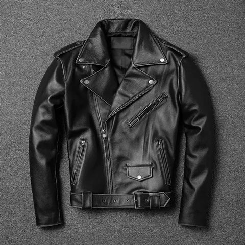 Harley Genuine Leather Jacket For Men, Autumn Short Lapel, Retro Distressed First-layer Cowhide Motorcycle Jacket, Trendy Jacket