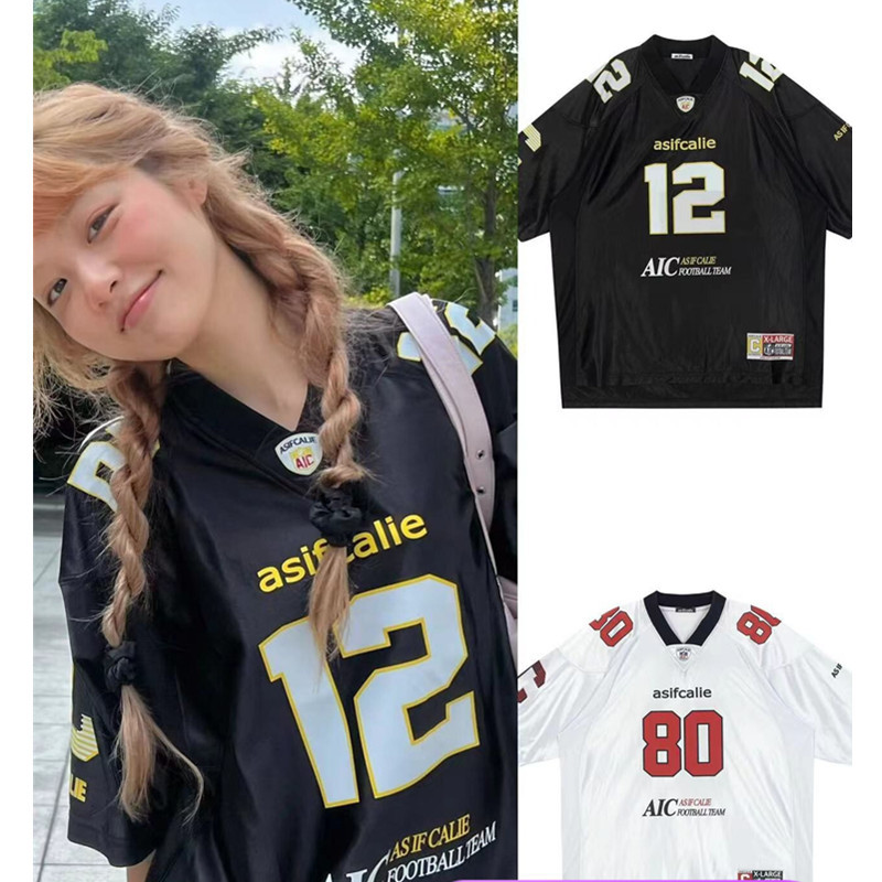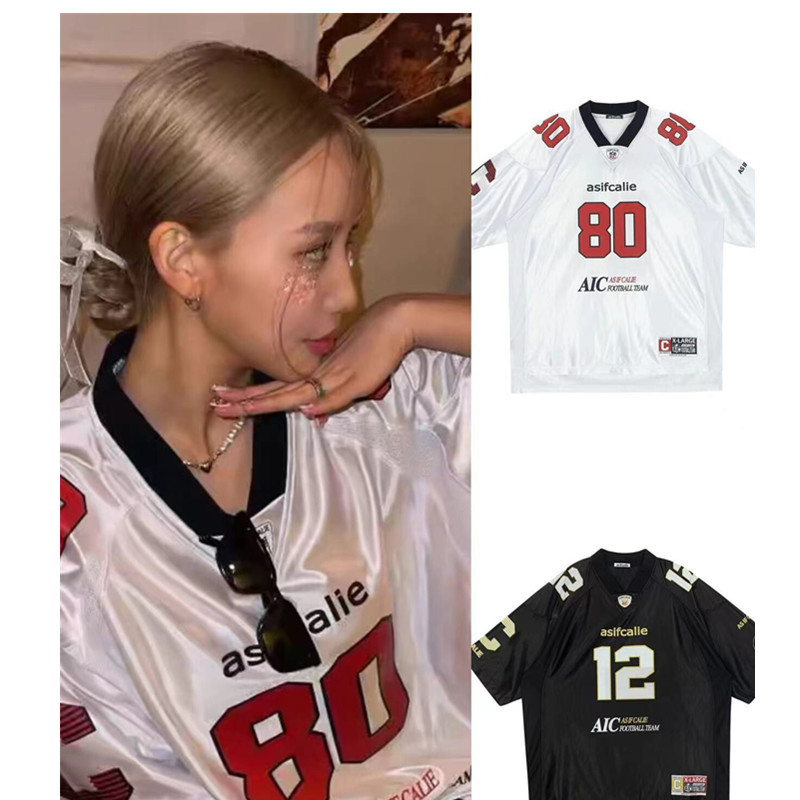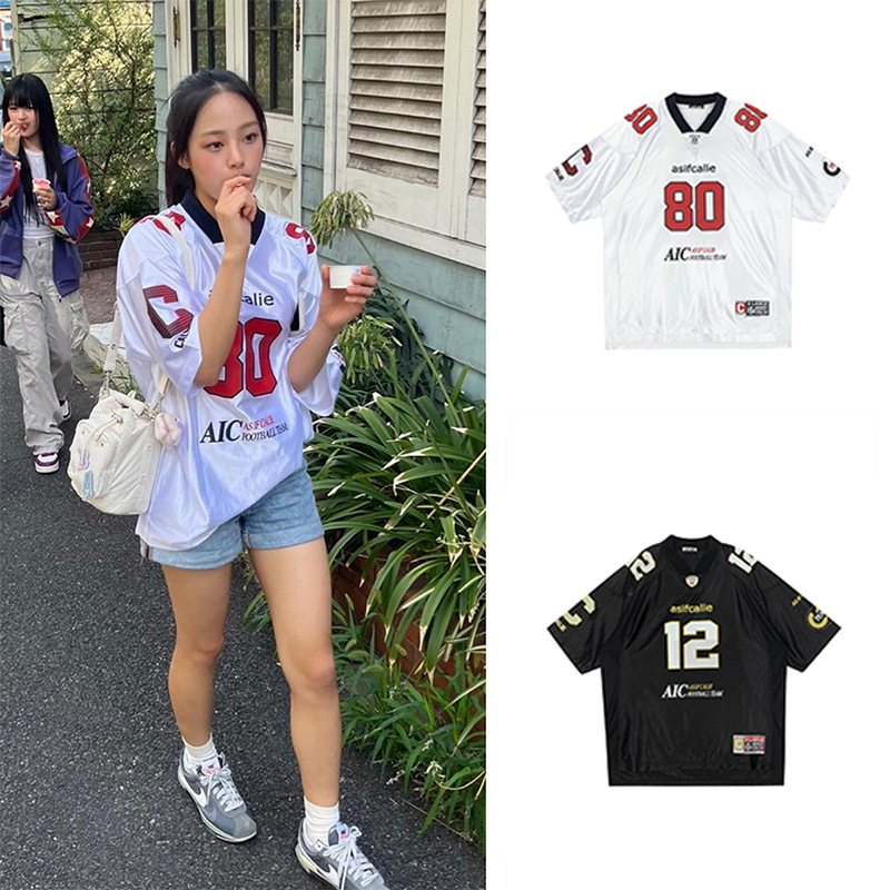 • Name : Minji Hyein Same Style ~ Korean Niche Neutral Letter OVERSIZE Mesh Stitching Jersey Short Sleeve T-shirt