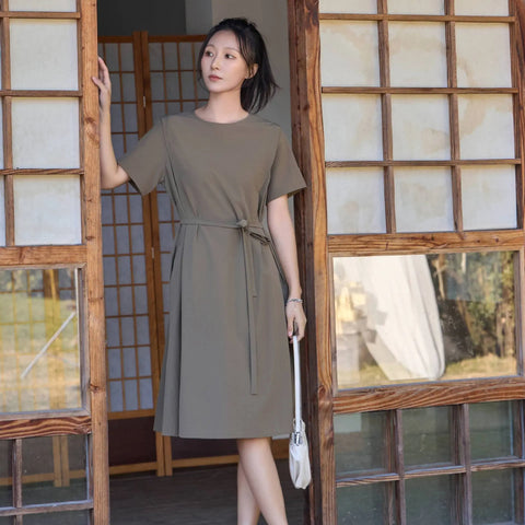 Spring And Summer Elegant Solid Color Waist-tight Dress
