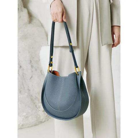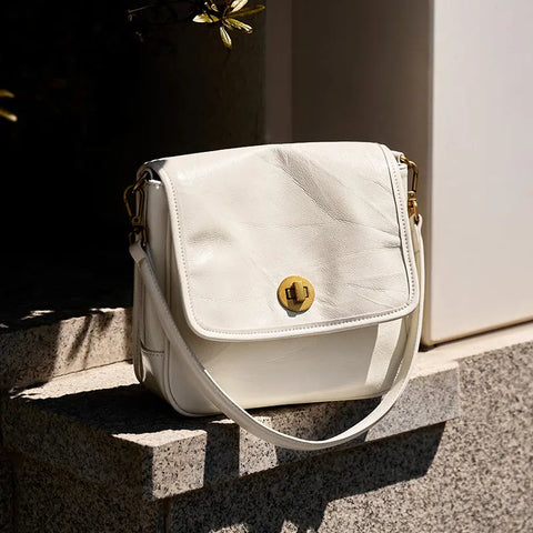 New 2024 First Layer Cowhide Messenger Bag Niche Light Luxury Women's Bag Design Single Shoulder Saddle Bag Leather Bag Women's Bag