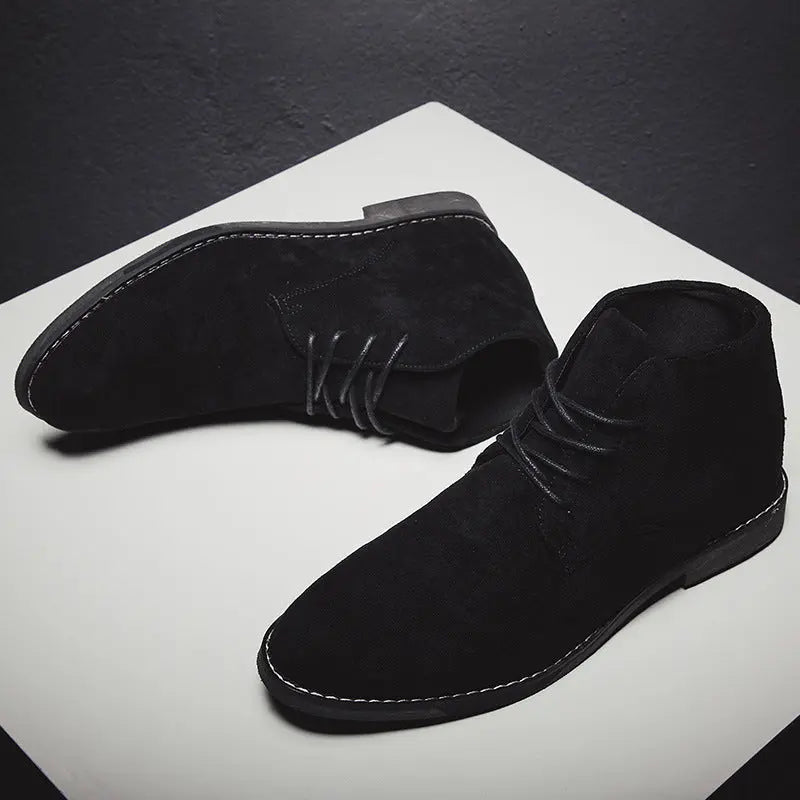 Upgrade your style with our Spring and Autumn Martin boots. These high-top, thick-soled ankle boots are perfect for outdoor workwear, offering comfort, durability, and a height-increasing design for men.